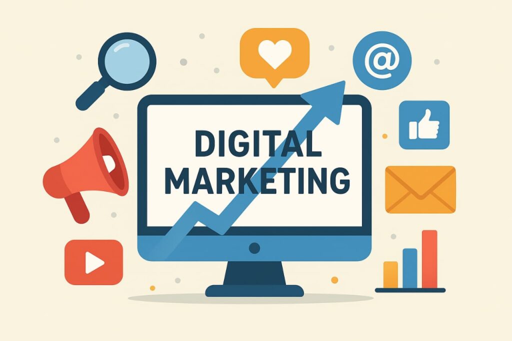 Digital marketing is the promotion of brands or products using the internet and digital communication channels to connect with potential customers. It involves using various digital platforms and technologies, such as websites, social media, email, and mobile apps, to create engaging experiences, drive traffic, generate leads, and foster brand loyalty. Key strategies include search engine optimization (SEO), content marketing, paid advertising, and email campaigns, providing businesses with trackable data to analyze performance and optimize results.